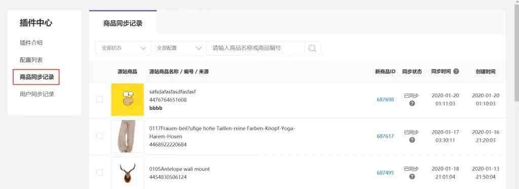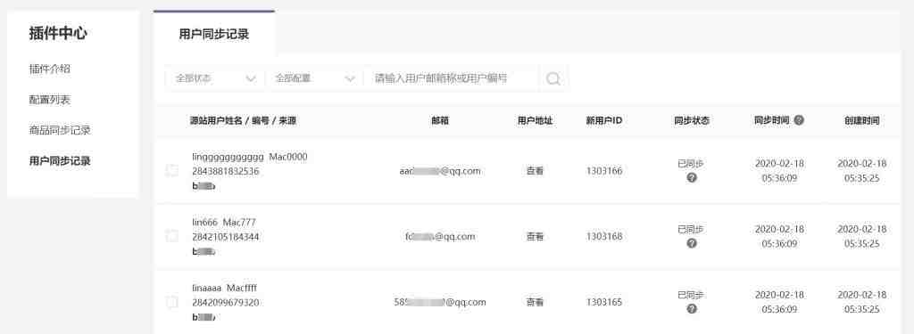 用户同步记录,可以看到同步过来的会员信息邮箱账号。