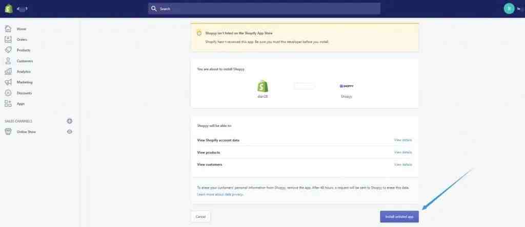 点击提交后,会转到你的shopify店铺后台(建议提前登陆后台),然后点击授权即可。
