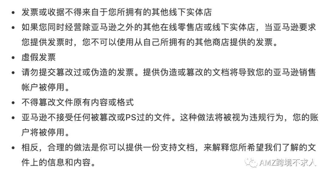 当卖家由于客户投诉或者竞争对手恶意投诉时,触发的产品调查。最有效的证据也一样是发票。需要提供发票作为调查用证明文件来支持亚马逊的供应链审核调查行动。所以,务必保存好所有的采购文件及记录,例如采购订单、收据和发票。这些资料或记录将帮助亚马逊在后期验证你库存产品的真实性。对于我们通过审核有至关重要的作用。