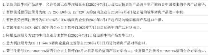 以下是7月4日以来海关暂停受理名单