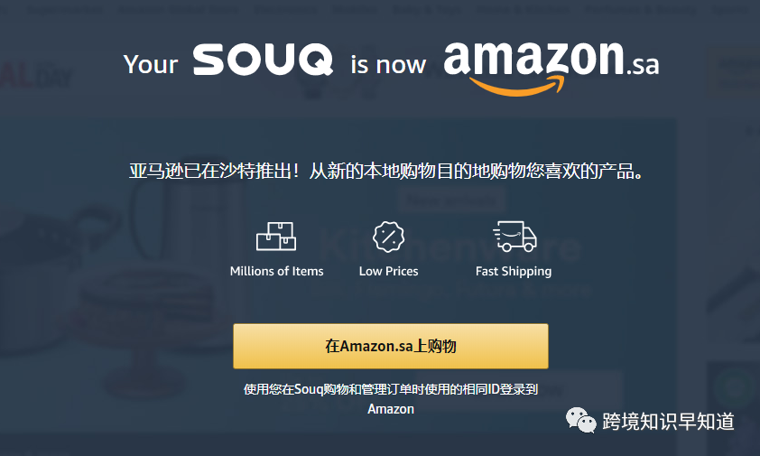 ,到6月17日Amazon.sa上线,沙特电商国际化进程正式启动。现在所有Souq.com客户都将自动重定向到Amazon.sa。亚马逊在一份声明中说:“所有现有的Souq.com客户账户,愿望清单,订单,交货地址,付款方式和客户支持查询都已转换为新的Amazon.sa账户。”一直以来沙特都以其固有的地区印象,宣告着它电商沃土的身份 — 中国跨境贸易的天堂。