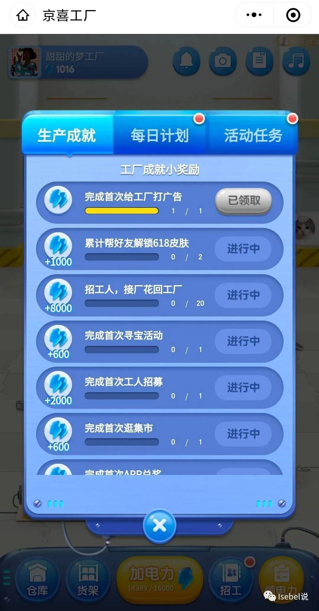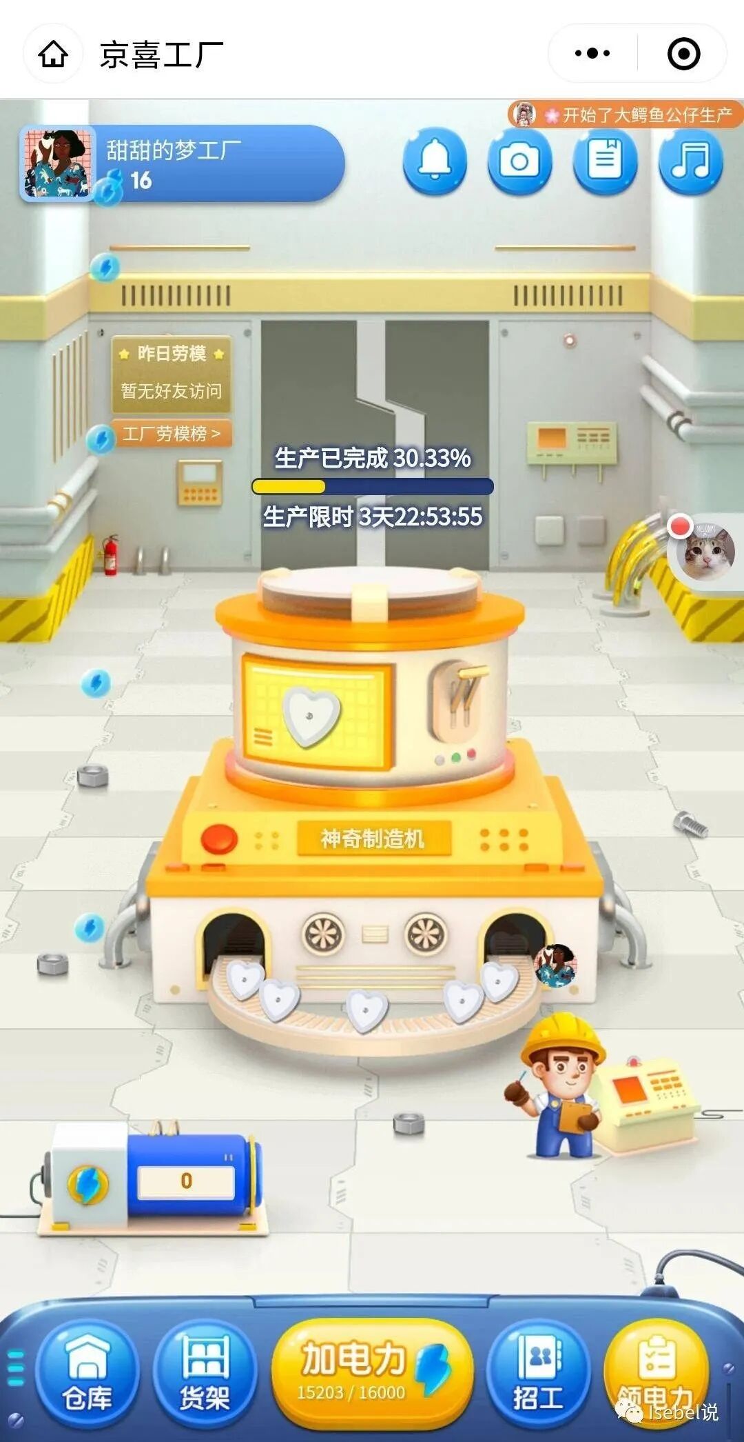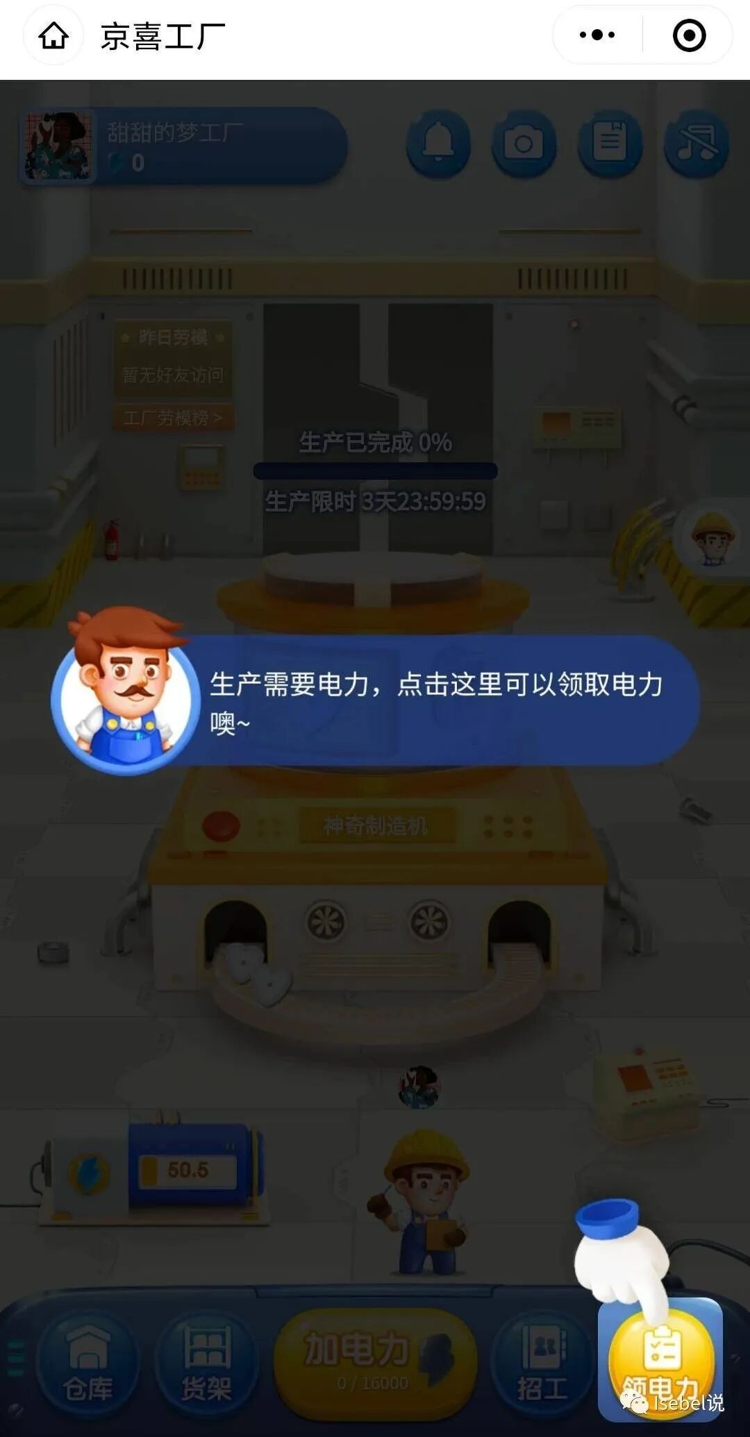 - 该活动足够吸引用户,用户可以随意选择自己想要去生产的商品进行生产,可以通过游戏化的玩法来获得电力,趣味性又简单操作。类似积分会员的和学习型社区也可以使用这种方式进行社区的留存活跃,以及产品拉新。同时叠加好友助力,签到打卡等玩法。
