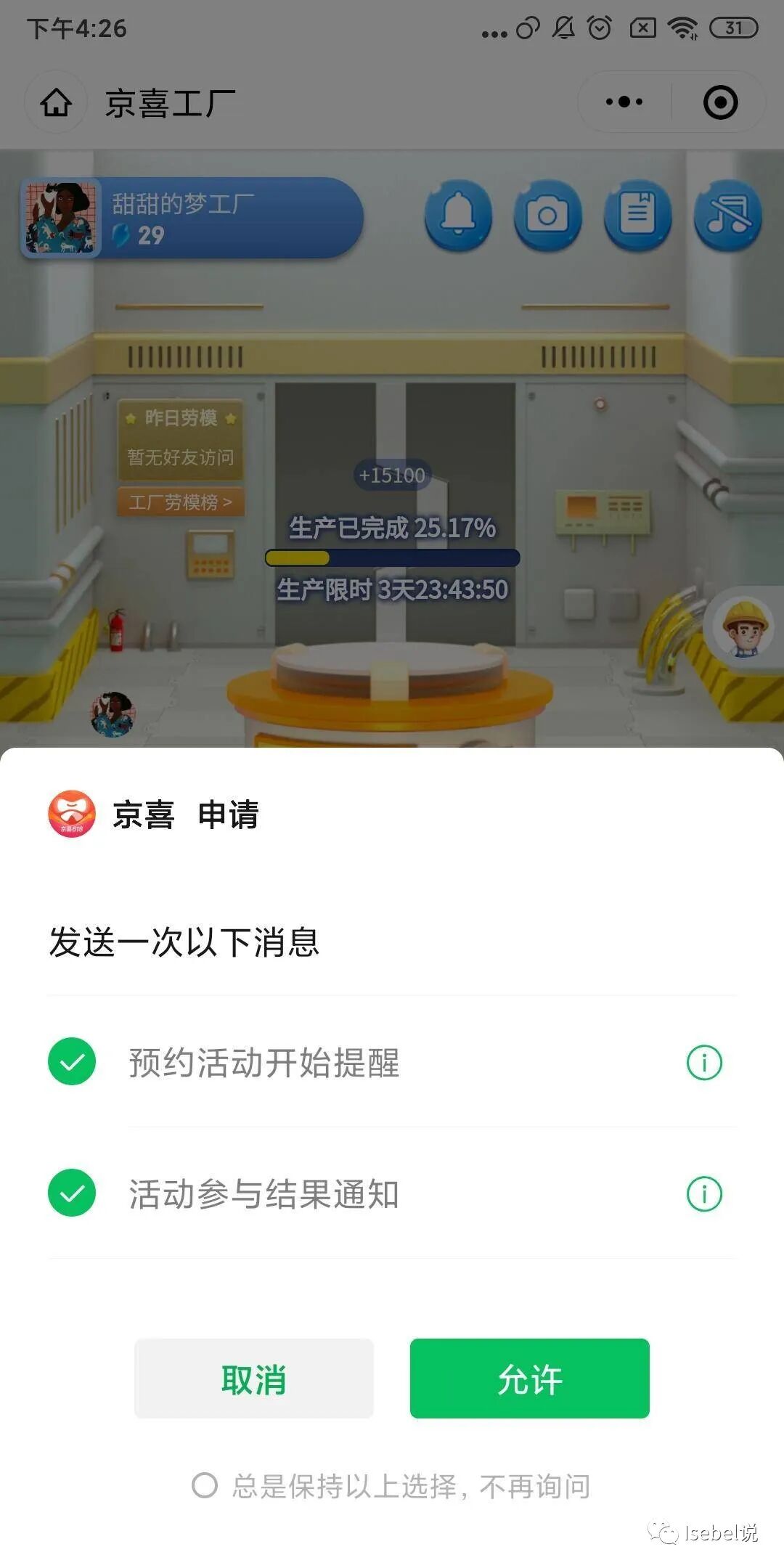 这类活动策划属于功能型产品活动,通过在产品中设置固定功能,来达成固定活动目的。京东新产品“京喜”发布,面对拼多多对下沉市场的攻占,需要构建护城河,拓客增长三四线用户。需要对京喜小程序进行推广。主要通过“电力生产物品游戏化任务式玩法、邀请助力、种树玩法帮好友收取电力、签到打卡等玩法,引导用户拉新目的。“京喜工厂”以生产制造选择商品为获取赠品的方式,只需要通过完成一定任务获取电力就能获得商品。有趣味性,且玩法比较简单,只需要“点击发电机”就可以获得自动发电,小白也会玩。活动增加了邀请助力的形式,可以邀请你的好友加入(招募工人打工)好友帮你的工厂打工,这样每天能获得更多的电力。还可以帮好友收取电力,能引导用户邀请新的好友加入,引流。采取任务式玩法,如果想要收取电力,就必须完成签到任务、邀请好友任务,逛市集等任务,虽然方式有点硬,但能带来一定的实际日活指标和完成一定数量的拉新指标。在工厂生产期间,用户可以通过工厂劳模榜-我的工厂劳模、好友头像-厂长圈 逛好友工厂,两种互动行为可以有机会获得电力奖励。其中帮好友收取发电机电力,可以获得好友发电机的部分电力奖励,而帮助好友捡起地上掉落的零件,也可以获得电力奖a.用户如果生产洗衣液6天限时,差1000电力,还有3小时限时结束,但是增加了0~6点不让发电的规则,限时时间内还按照规定的时间数计算,不让发电,容易导致用户认为这个活动是一个套路,很坑的感觉。b.目前邀请可以邀请14人进行打工,而你只能去给其中的3个人打工,这样来说想让用户帮助拓客但又限制不能帮别人打工,规则设置不合理。②体验差:从很多玩过的顾客反馈中看到,普遍反映很坑。几元钱的商品,需要每天盯着几个月才能完成,没有公告,没有通知,没有规则明细,规则一天天变,任务越来越多,可积分会越来越少。③活动期间不停的限制条件更改活动规则,增加人物,没有任何公告和通知,也没有规则和生产的电力信息明细,而且生产完的东西无法兑换。④客服响应处理速度慢。活动中遇到问题会指引联系客服,但是活动是限定时间的,客服让等,但直至这次生产活动就过期,投诉后也没获得反馈,更没有实质进展,大大伤害了用户体验。商品的要求很高,每天最少要5W的电力,商品要求太高,难以完成。⑤ 使用了社交游戏化的玩法,但其中的社交玩法并不突出。比如到好友的工厂参观,能玩的功能点不多,互动不够,复玩几率不高。