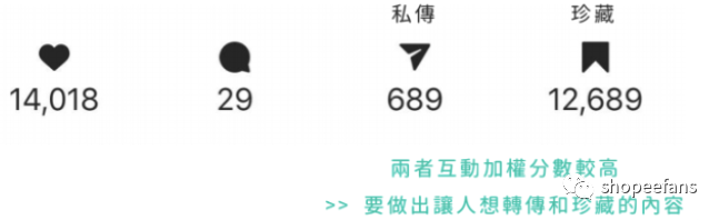 以互动数来说,加权最高的为「互动」及「珍藏」。