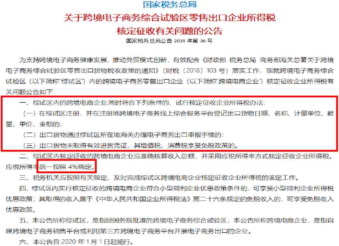 去年10月底,国家发布了综合试验区内跨境电商按应税所得率4%核定征收的政策,引起了不少卖家的困惑,自己的公司到底应不应该选择这种缴税方式呢?