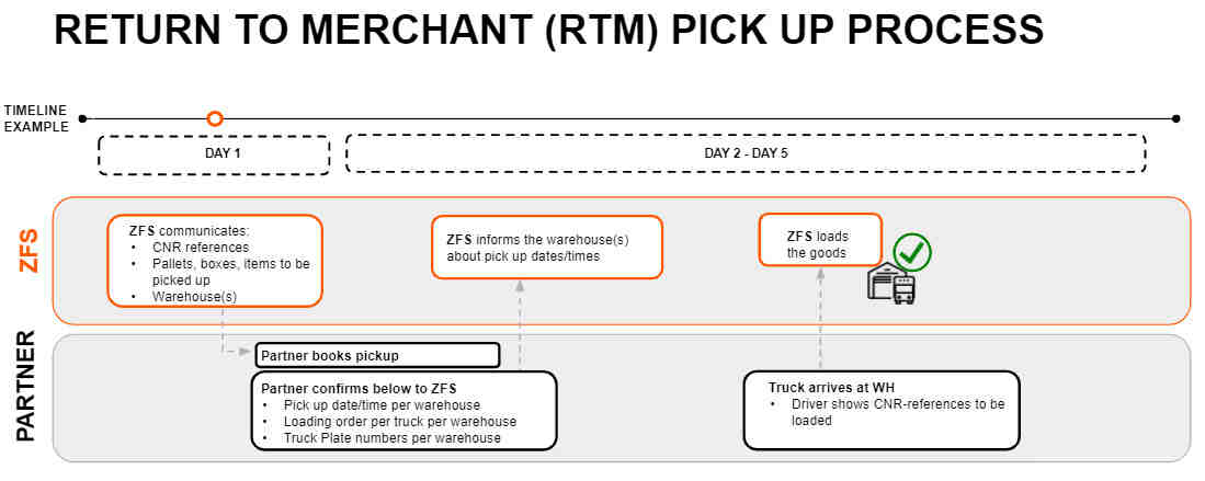 合作伙伴必须在收到 ZFS 通知后的第 3 个工作日内确认取件,并且必须在第 5 个工作日之前取件