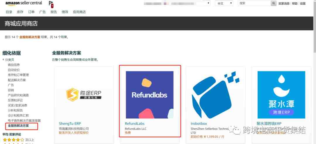 这个软件在亚马逊的商城应用商店,全服务解决方案分类是可以直接找到Refundlabs.也就是这是一个官方认可的SPN服务商,亚马逊官网也非常支持各位卖家朋友绑定使用退款管家的功能,进行亚马逊索赔,争取本来就属于属于自己的利益。