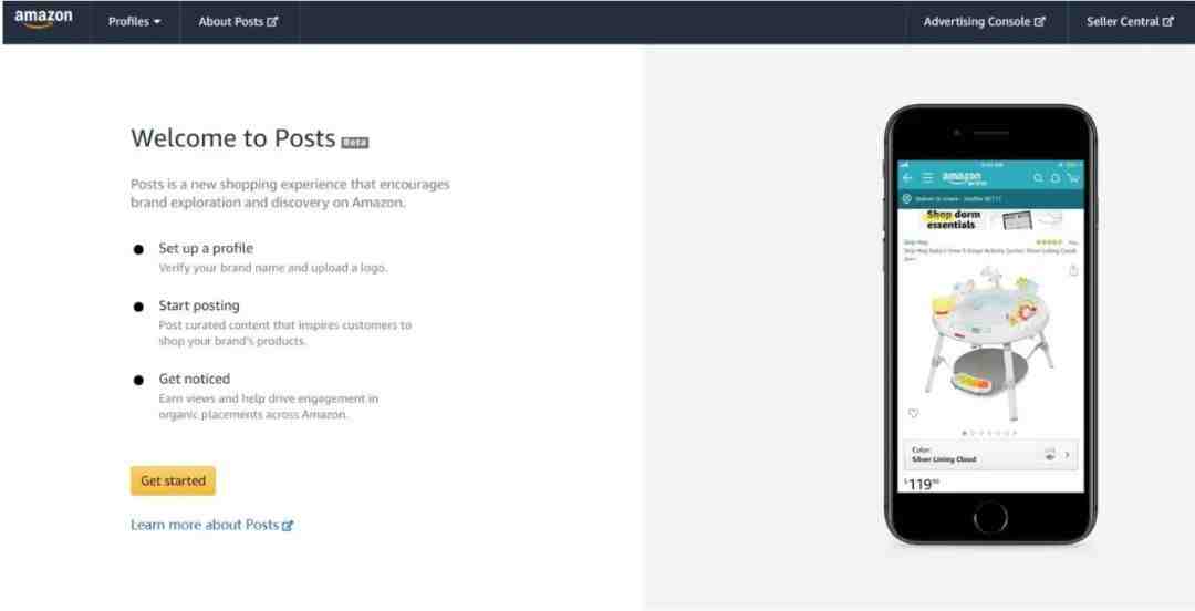 第二步,可以看下关于Amazon Post的简单介绍,然后点击【Get started】