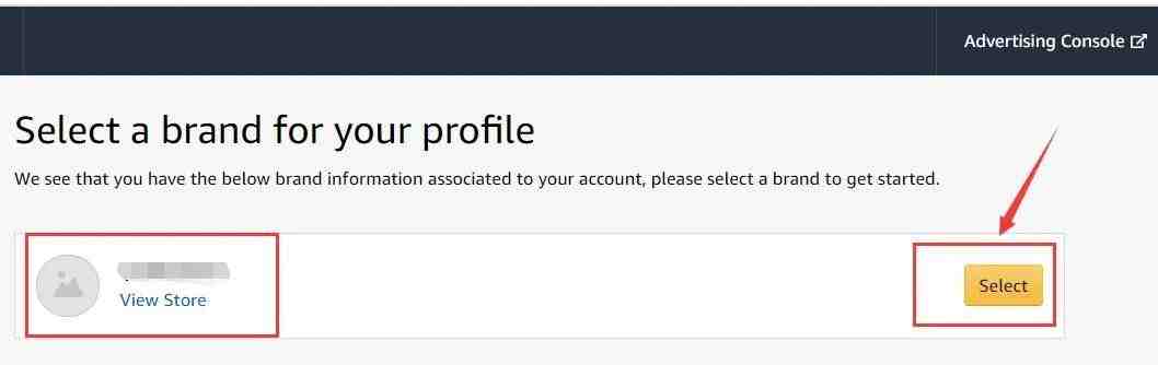 第三步,选择店铺中备案过的某一品牌,点击【Select】