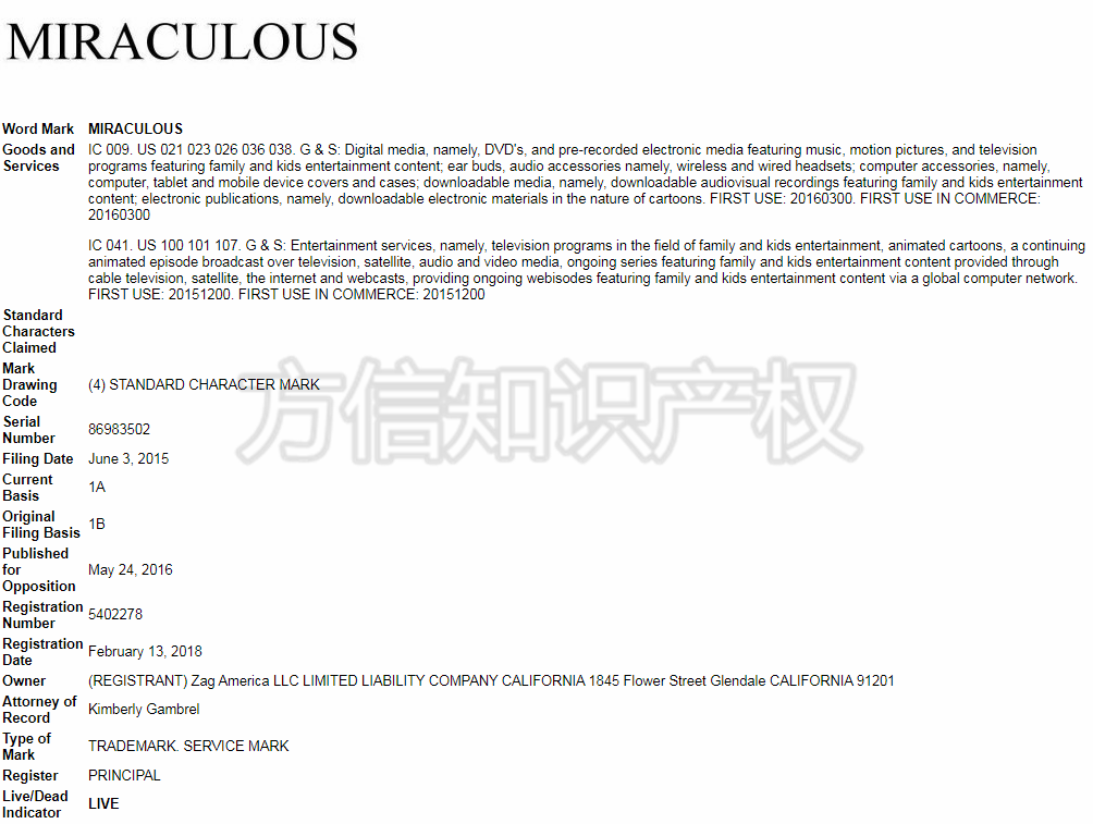 (Miraculous美国9.41类商标)