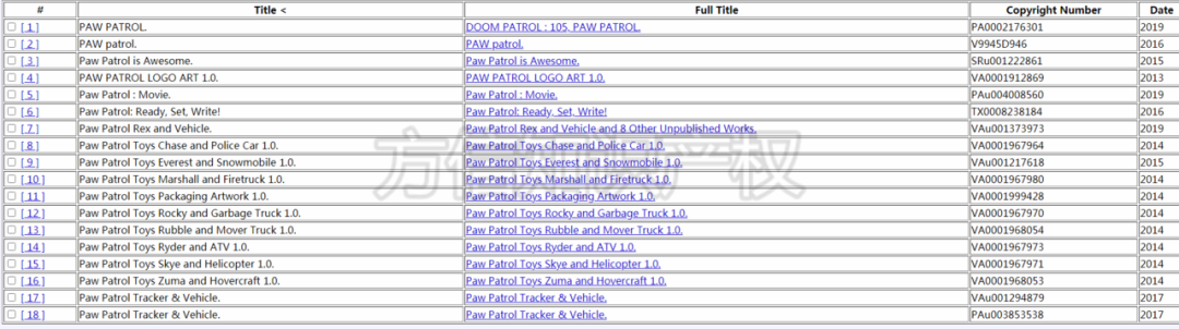 此外,需要注意到Paw patrol不仅将人物角色登记了版权,部分有关的玩具包装,宣传片,玩具外观也有版权。