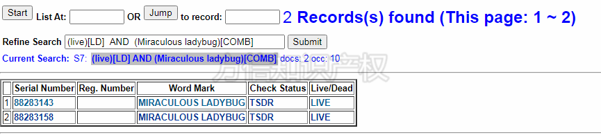 令人惊讶的是MIRACULOUS LADYBUG作为动画名称并没有注册完成,在9类和41类都处于申请中状态