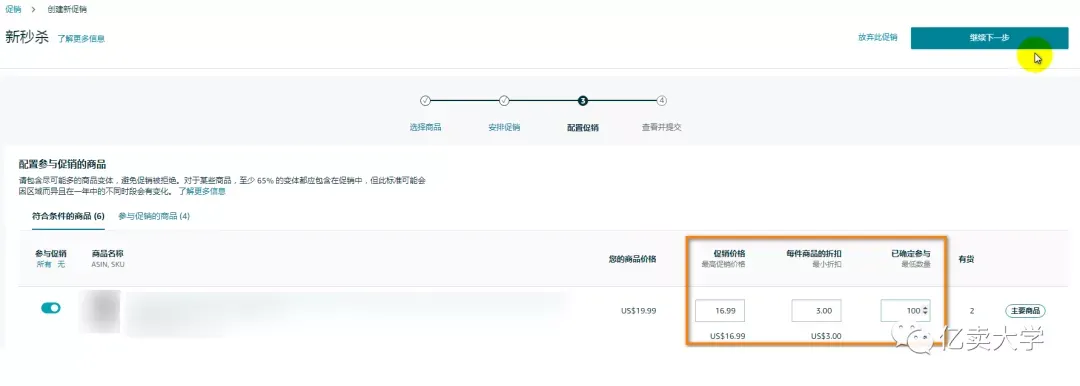 Step2:查看符合推荐资格的产品 > 设置秒杀信息 > 提交报名