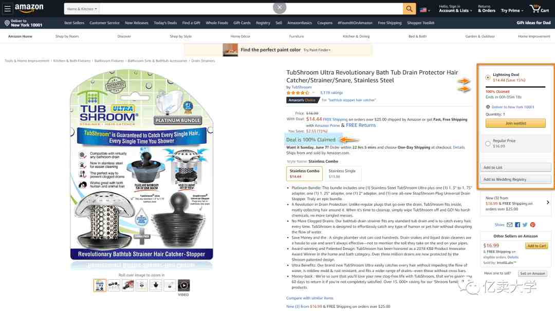 如下图,亚马逊前台可以获取产品秒杀信息: