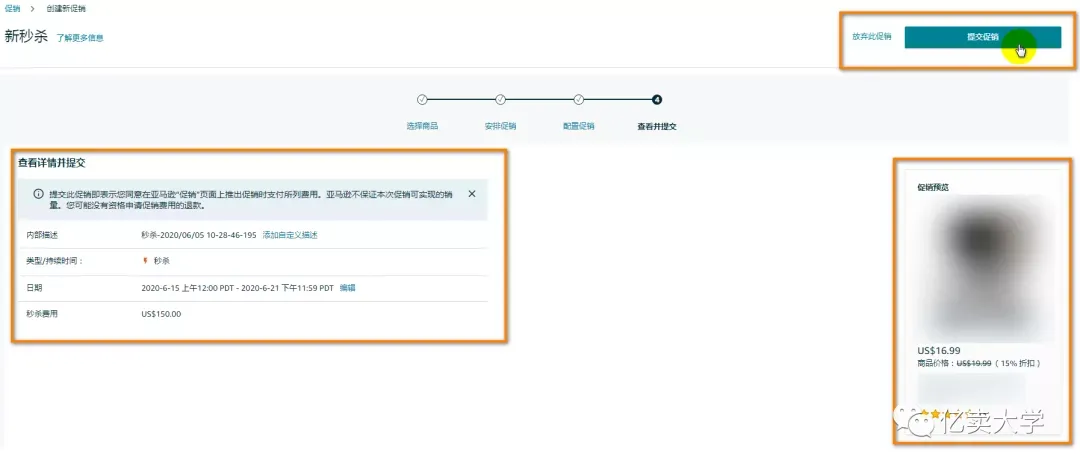 Step 3: 复核秒杀设置内容 > 提交秒杀 > 等待审核与具体活动日期