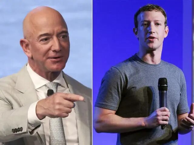 左为亚马逊创始人杰夫·贝佐斯,右为Facebook创始人扎克伯格