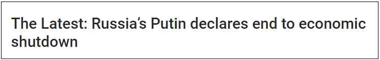 俄罗斯总统普京11日宣布,从12日起全俄结束带薪休假,各地要在条件允许情况下为恢复经济活动创造条件。