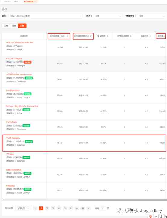 我们从销量、销售额以及粉丝数三个指标判断一个店铺属不属于大卖,利用第三方数据工具,可以快速找到相关类目的热销店铺。 在搜索结果页面,只有一家是做男装垂直类目的-VVID apparels,其他都是杂货铺居多。他家的粉丝量1W+,过去30天销量却有4W+,跟马来的女装beautyone一比,无论从销量还是销售额,都跟beautyone不相上下。beautyone 销量24530,销售额30万马币,开店时间3年vvidapparels 销量42462,销售额29万马币,开店时间1年 “体育与体育户外”也是同样的情况,“热销店铺”第一页根本找不到这个大类目的垂直店铺,都是铺货为主的杂货铺,别人铺货我专业,这个才机会点。 从去年虾皮把代言人从bleakpink换成足球巨星罗纳尔多 ,我们就应该意识到,更换代言人,最终目的是服务于公司的发展策略的,而不是取悦粉丝。取悦粉色只是一个表象,本质是shopee平台自身的发展需要,要把男性用户群体吸引过来,增加平台的受众群体。所以男性类目、与男性市场相关的类目,都是平台的重点类目。