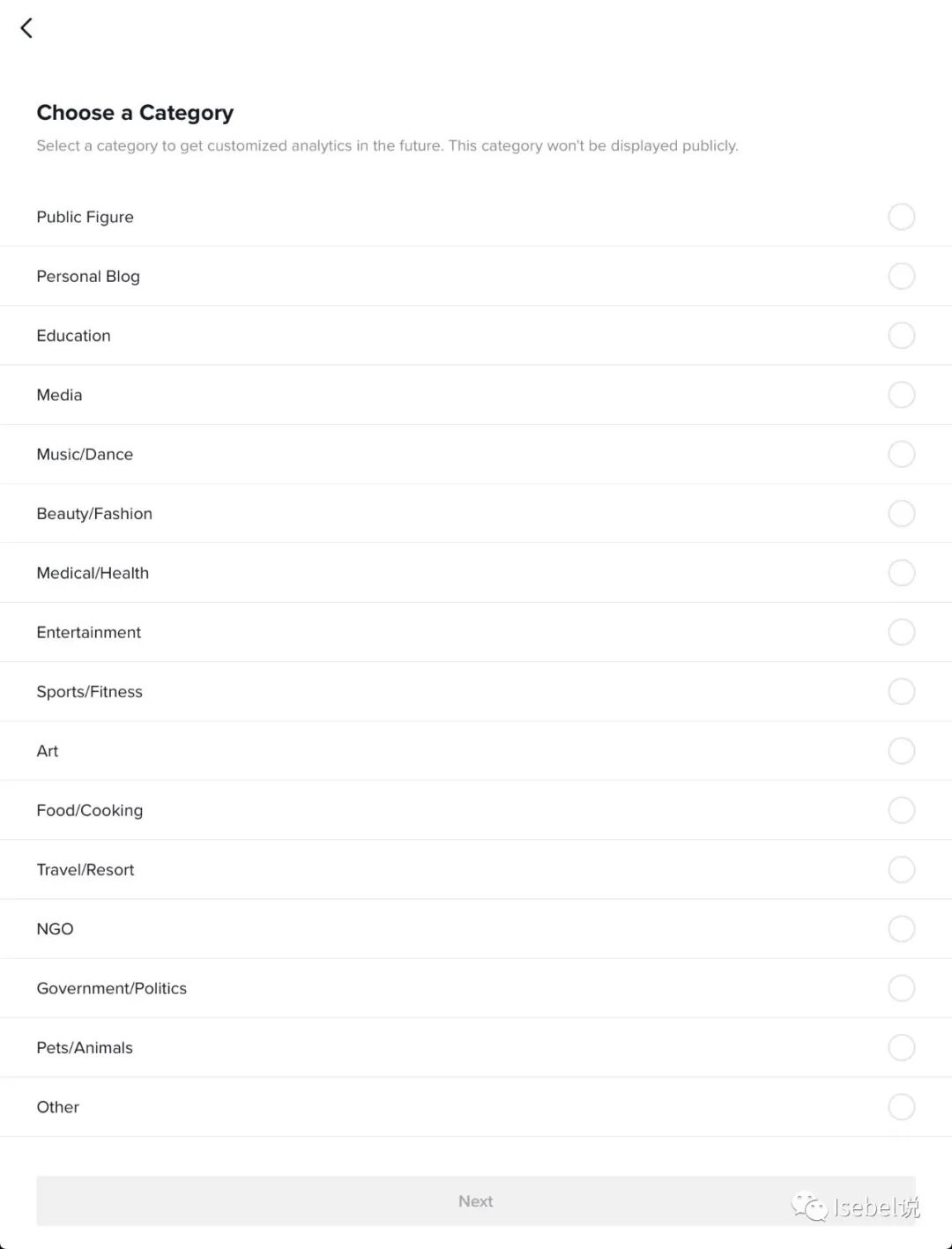 至于选什么,就需要根据你自己的账号内容进行选择啦!通常来说基本都会包括在其中。如果没有可选的选项,你可以选择"other"其他。