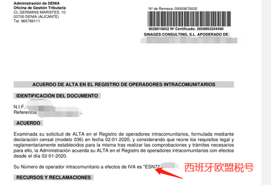 2.西班牙欧盟税号证书