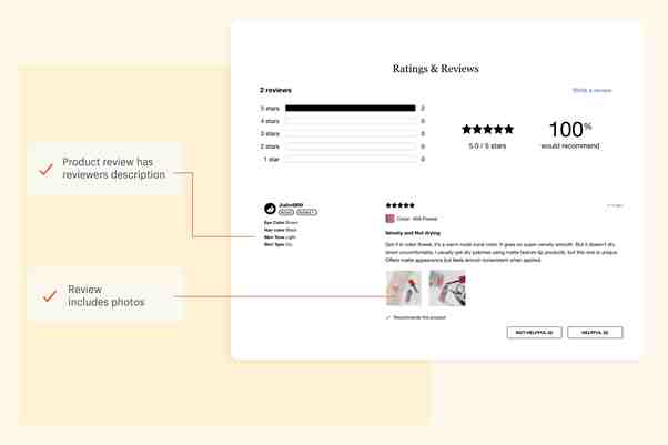 EM Cosmetics 是一个美妆品牌,为了赢得客户的信任,EM Cosmetics 通过图片、使用案例和示例清楚地说明产品如何满足了消费者的需求。