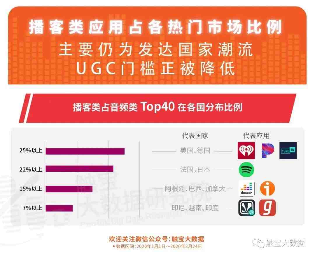 播客类应用的流行趋势目前主要以欧美地区的发达国家为主,这类地区的用户有强烈的表达欲望,文化水平也比较高,很容易对于垂直话题发出自己的声音,而当地的受众也很灵活地运用各种渠道去收听。Spotify 收购了播客头部平台 anchor,将制作和分享的渠道打通,有效提升了用户在平台上的停留与表达,而这样的风潮是否会随着付费情况提升延展到新兴市场并在当地引导更多年轻用户进入,仍需产业链上的其他内容支持和提供机构发展。