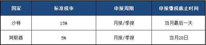 2)阿联酋的季度申报是像英国申报一样不按自然季度划分;而沙 特则是按自然季度申报,并且年销售额达到4000 万里亚尔(SAR)的客户需要转为月度申报。