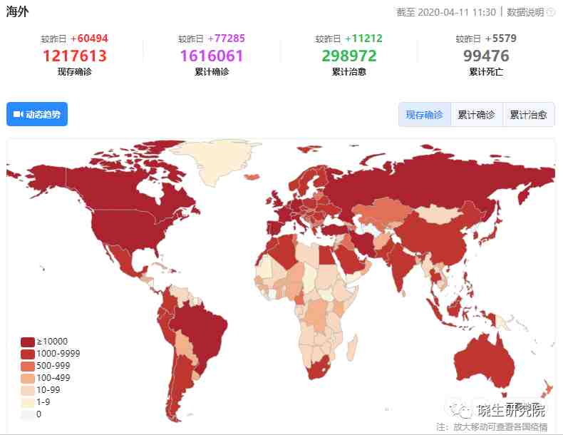 疫情人数不断上升,目前海外已至少有新冠病毒感染病例1616061例,全球累计死亡病例达99476例。