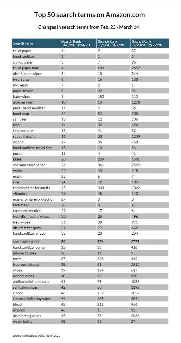 与此同时,自2月底以来,亚马逊上大多数购物者对卫生纸、洗手液、纸巾、n95口罩和体温计等生活必需品的需求并没有减少。