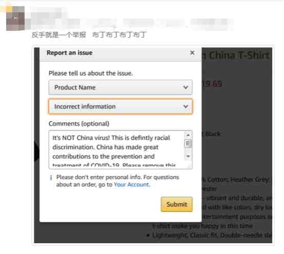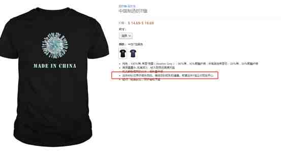 亚马逊上的反华产品屡见不鲜,姐夫也少有整治!近日,亚马逊上再次出现了“病毒中国制造”的T恤,这次,虽然姐夫不管,但是中国卖家却纷纷动手了!