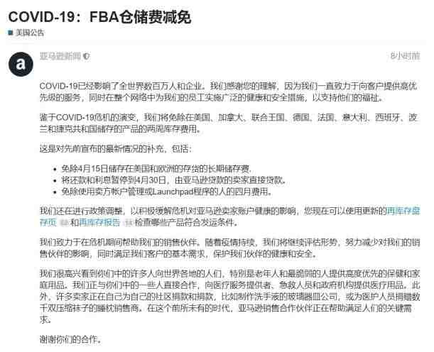 虽然卖家的损失远大于这两周的仓储费,但是也看出,亚马逊在积极调整政策帮助卖家减少损失,相信后期也会有更多扶持政策!