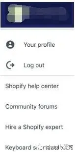 账户管理操作:点击右下角的用户名,在下拉选项中可以看到shopify账户管理操作。Your profile可以打开账户的管理页面,登录邮箱和密码都是在这个页面进行修改的;log out是退出登录。Shopify help center是shopify帮助中心,里面有官方的帮助文档,以及客服中心;community forums是官方的英文论坛;hire a shopify expert是寻找官方认证的专家帮你解决问题;keyboard shortcuts是后台的快捷键操作。