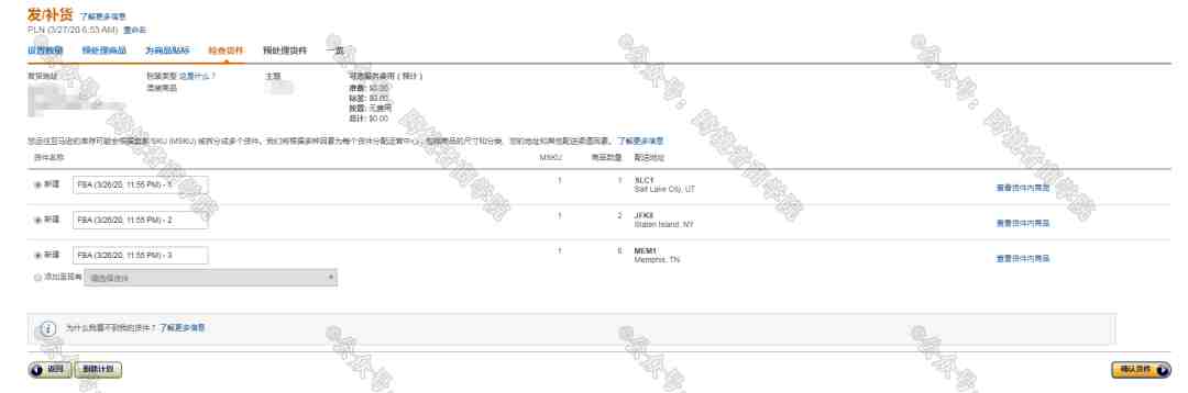 我随便填了一个发货数量,然后就成功到了分仓这一步,除了被分了三个仓之外没有任何问题。