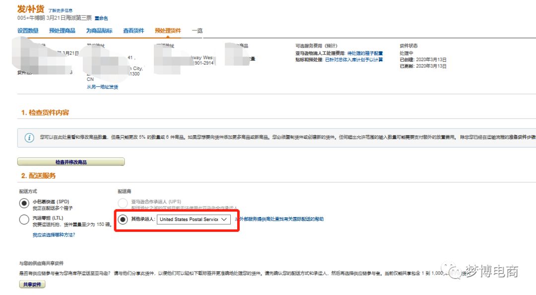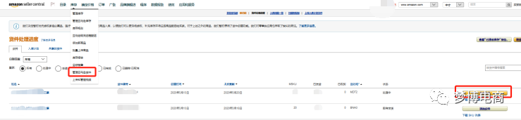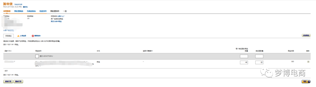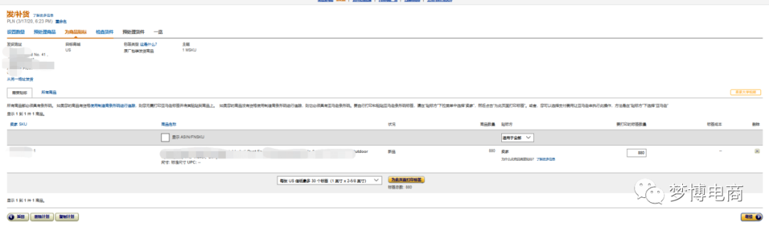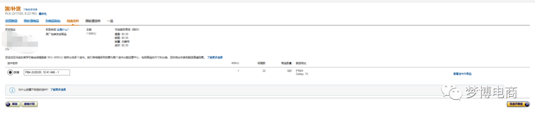 这里是设置数量,编辑文档日期3月20日正好遇上了亚马逊美国站新政策,受到疫情的影响3月17日--4月5日只能发家庭必需品和医疗物资,3月17日之后其他类目不支持发货,本来没有红色的警告,右边也是可以填写数量的,右上角还可以点击添加商品。因为我现在演示的这个产品被阻止下一步了,于是前半部分的演示我换成医疗类目:以上截图是医疗产品发补货的设置数量界面,它和其他类目不一样,填写的不是每个sku的商品数量,应该是它只有一个变体的缘故,我们忽略这种不常见的情况继续往下看这里是预处理商品,你扫一眼确认商品数量,然后点继续这里是为商品贴标,如果产品还没贴标,就打印商品标签,如果已经贴过标了,那直接继续这里是检查货件,主要是确定分仓情况,以及要不要和之前创建过的计划合仓,确定完后对货件命名,点击批准并继续就进行到了后半部分的预处理货件。但是这里显示全部都发到同一个仓库FTW1,可能是由于只有一个sku的缘故,也可能是系统随机的,还有可能是当前疫情大力支持卖家发此类产品所以没有分仓,以免分仓对卖家造成麻烦。所以这次就不便和大家演示分仓合仓的概念了前半部分的点击批准之后会被系统保留着,从以下途径可以查看到,后半部分的进行可以从此途径点进去: