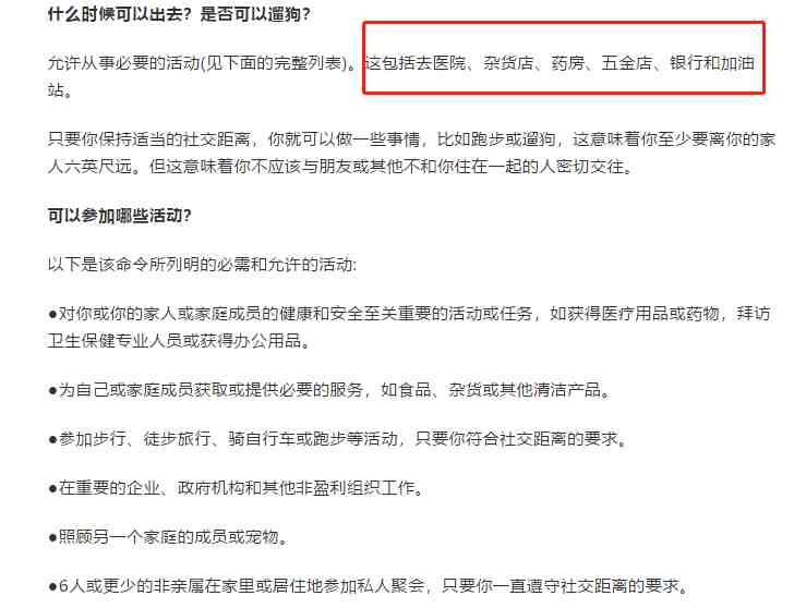 翠花心跳加快,彷佛是奶茶倒灌入心脏一样。幸好最终确认是谣言,才心安一点。翠花查询了加州禁足令的细节,快递和航运服务属于必要服务,并没有被禁止。和欧洲一样,不建议人外出,但是如果有狗带,人是可以出来溜达的。看这些内容就知道国外宠物地位有多高了。