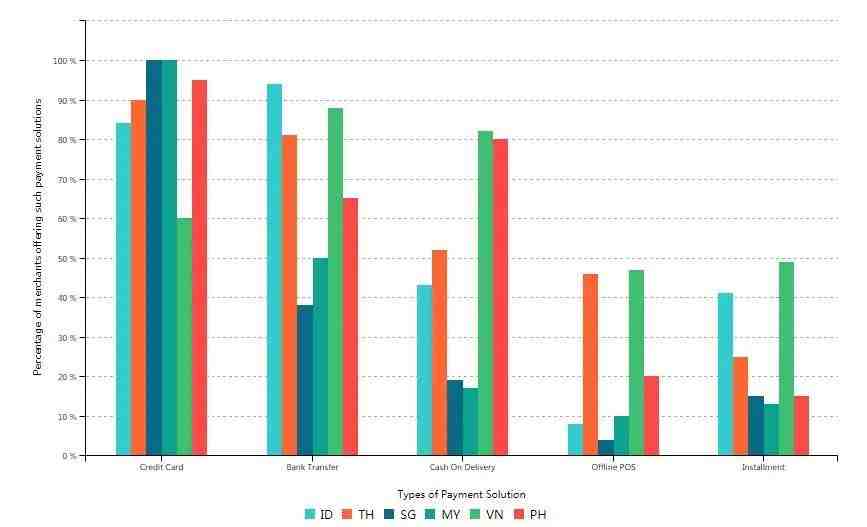 可惜的是,在 2019 年内大众对于线上支付的信任度尚未有显著改善。货到付款(cash on delivery,COD)仍然是最常见的付款方式,约占总交易量的 88%。