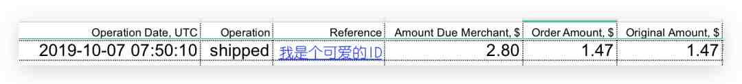 4. 在这个Case当中,Amount due merchant列中显示2.8,而原始订单金额为1.47,扣除佣金后剩$1.25,$2.8-$1.25=$1.55,就是开始跟大家说的运费补偿。