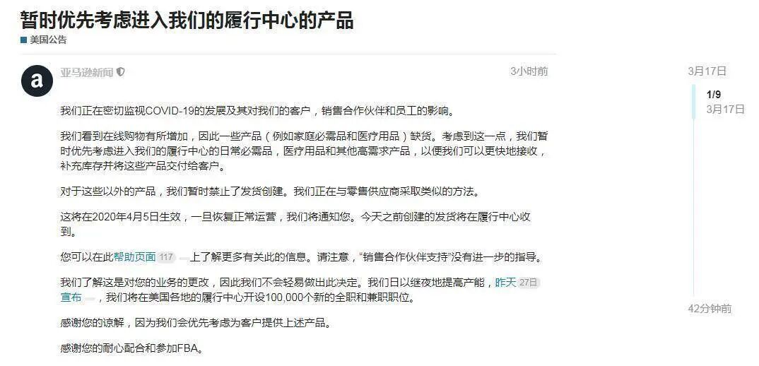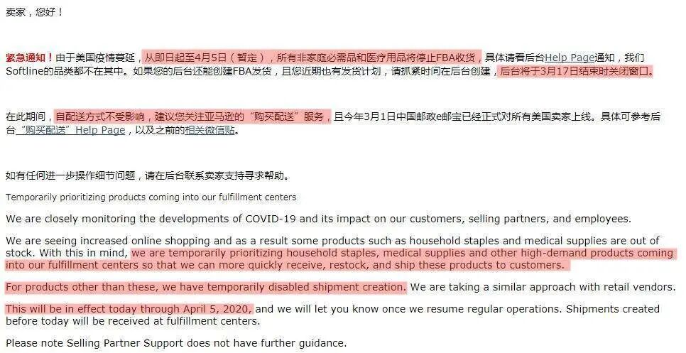 然而,就在这些问题还没得到妥善解决的情况下,又有让人出乎意料的消息传来。 一 亚马逊宣布3月17日起 暂停非医疗和生活必需品入库 昨天,亚马逊的一封邮件在卖家群、朋友圈炸开了锅!亚马逊宣布,从3月17日开始,针对非生活必需品和医疗用品暂停FBA入库!卖家直呼:“还让不让人活了?”!在亚马逊卖家后台和官方论坛上,可以看到这则公告消息。 亚马逊官方公告: (图源亚马逊卖家论坛) 卖家收到的邮件如下: (图源亚马逊卖家收到的邮件) 该消息一出,卖家纷纷进入紧张状态,开始涌入卖家后台创建货件。不过,船长BI注意到,当时,已经有卖家表示页面都进不去了。 (图源船长BI卖家交流群) 二 关于这次FBA的新规 卖家需注意的几个关键点 1、亚马逊发布FBA新规的目的 亚马逊表示,正在密切监控COVID-19(新冠病毒)疫情的发展及其对买家、卖家和员工的影响。近期亚马逊线上购物需求不断增长,生活必需品、医疗用品等出现短缺。为了向所有人提供更好的服务,将暂时优先在运营中心接收生活必需品和医疗用品以及其他有较高需求的商品,以加快这些物品的接收、补仓,并以更快的速度配送给消费者。对于非上述品类的商品,将暂时停止创建运营中心的入库申请。 有业内人士认为,亚马逊此番举措也可能与其仓库的员工被确诊新冠肺炎有关。船长BI获悉,据CNBC发布的报道称,在亚马逊西班牙和意大利物流中心,至少有5名仓库员工的冠状病毒检测呈阳性。当然,这只是猜测,并不能代表官方的说法。 (图源CNBC) 2、限制入库时间和受影响站点 船长BI了解到,此入库限制3月17日5am(PST),执行至4月5日(暂定),适用于美国和欧洲站点。据悉,亚马逊对自营业务的商品上也采取了类似的措施。 3、3月17日创建的货件可否正常入库 根据亚马逊发送的邮件通知说明,2020年3月17日(当地时间)之前的创建的货件可正常接收入库,但不包含17日当天创建的货件。也就是说,如果您17日创建的货件,很大可能会无法入库。 (图源亚马逊邮件内容截取) 但也有卖家收到亚马逊的回复称,最有效的验证方式是在后台尝试创建货件,如果还能够创建成功就还可以正常发货并入库。换言之,如果昨天您有成功创建货件,接下来一定要跟踪好货件状态,以实际情况为准,客服的答复不一定准确。 (卖家收到的邮件回复) 4、已入库不是被优先接收的品类的可正常销售 亚马逊表示,对于已入库的非生活必需品或医疗用品类的商品是可以继续正常销售的。 5、是被优先接收的品类,但无法创建入库 属于被优先接收的品类,但无法创建入库申请的,如果您的商品分类正确,那么可能是您的商品优先级不高。 6、是生活必需品或医疗用品,但无法创建入库 属于生活必需品或医疗用品,但无法创建入库申请的,需要检查您的商品分类是否错误,目前系统判断类别,不接受分类修改。 您可参考亚马逊更改商品分类,获取帮助: https://sellercentral.amazon.com/gp/help/G201950630 7、对FBA卖家的影响 根据亚马逊的公告,受到疫情的影响,FBA目前只优先在运营中心接收生活必需品和医疗用品以及其他有较高需求的商品,其他不相关的商品暂时不能发往亚马逊运营中心。 在限制入库期间(3月17日至4月5日),预计会对卖家业务、亚马逊库存管理以及买家购物体验产生较大影响。 除此之外,也会给卖家带来不同程度的损失。例如,物流成本的增加、其他中间环节产生的费用或资金占用等。 8、对FBM自发货卖家的影响 自发货也或多或少会受到影响,例如疫情期间,货是否能够正常发出去。根据亚马逊的建议,您最好关注亚马逊的“购买配送”服务,且今年3月1日中国邮政e邮宝已经正式对所有美国卖家上线。 9、FBA目前接收正常入库的品类 亚马逊FBA目前接收的品类主要以家庭生活、医疗用品等高需求商品为主。 以下品类的商品可以正常入库: Baby 母婴用品 Health & Household 健康和家居用品 Beauty & Personal Care (including personal care appliances) 美容与个人护理(包括个人护理工具和配件) Grocery 食品保健品 Industrial & Scientific 工业科研 Pet Supplies 宠物用品 船长BI提醒 在这样的“特殊”时期,一定要严格遵守亚马逊相关政策!千万不要错误将商品列入一个不准确的类别,否则将会违反亚马逊的商品政策,并可能导致您的账号被封。 三 FBA停止收货后 卖家可以这样应对 FBA停止收货后,对于使用FBA的中国卖家而言,这是否意味着只能靠现有的库存支撑到FBA恢复接收? 答案当然是否定的。那么卖家又该如何应对? 1、评估现有库存,做好库存管理和补货规划 您可以先使用船长BI「FBA库存管理」功能评估好现有的库存,做好库存管理,包括备货和补货,以及冗余库存管理。 在「FBA看板」中,您能够切换查看所有店铺库存最新数据状态,包括总成本、需补货SKU数、冗余SKU数、最长使用天数、周转次数、总库存量、预计总LTSF、上个月商品动销率。 通过这些数据,船长BI可以更好的帮助您优化库存管理,并有针对性地去改善卖家库存绩效指标。 (点击查看大图) 提示:您可以通过切换查看上述各数据折线图变动趋势。 与此同时,您还可以通过「库存列表」功能做好补货规划。通过数据分析的结果,提示您的产品可售天数和建议补货数量,您需要操作的只是设置自己的备货天数和到货天数,系统自动会通过数据分析做判断,提醒您什么时间段需要补货,大大提高您的运营效率和库存周转。 (点击