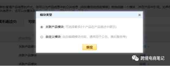 速卖通产品信息模块分为两种,一种是自定义模块,一种是关联产品模块。关联产品模块就是平台提供给卖家的关联营销模板,操作非常简单,只要选择添加商品即可。