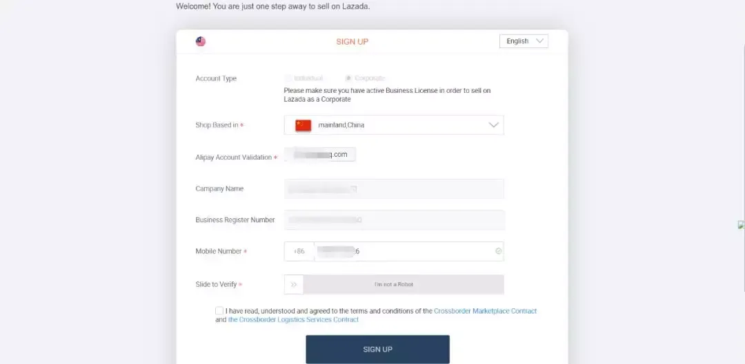 登录Lazada马来站点的后台 百度搜索Lazada就会跳出官网,点击顶部的seller on lazada,选择LazGlobal(跨境)即可 填写卖家信息 此处需要注意:1、需要营业执照(个人不行)2、需要验证企业支付宝(不是个人支付宝)3、最好使用谷歌浏览器 资料填完之后登录后台 补充仓库信息、公司信息、填写问卷 具体的提醒内容已经在图片备注 之后是等邮件通知 注意:第一次的通知不是最终成功,需要上传3个sku(如何提高通过率点击查看)以及补充银行账户(P卡),收到6封祝贺你通过...才是最终成功的邮件 如果收到“不符合平台要求”的邮件,即为入驻失败,可以再次提交或找代入驻公司处理。