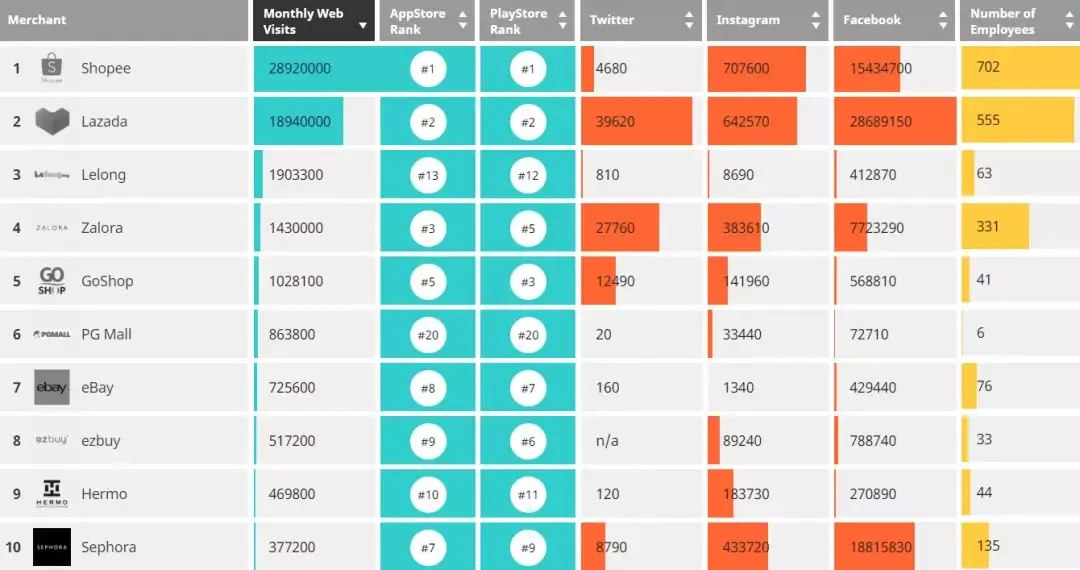 前天(3月3日),Iprice集团发布了2019年4季度东南亚各国电商平台的相关数据,指点了“逐路英雄”!