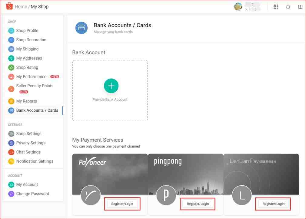 为了便于卖家接收销售货款,Shopee平台的卖家需要在卖家后台中心绑定收款账户,目前Shopee平台支持Payoneer、PingPong以及LianLian Pay第三方支付服务商,卖家可参考以下步骤进行账户绑定。