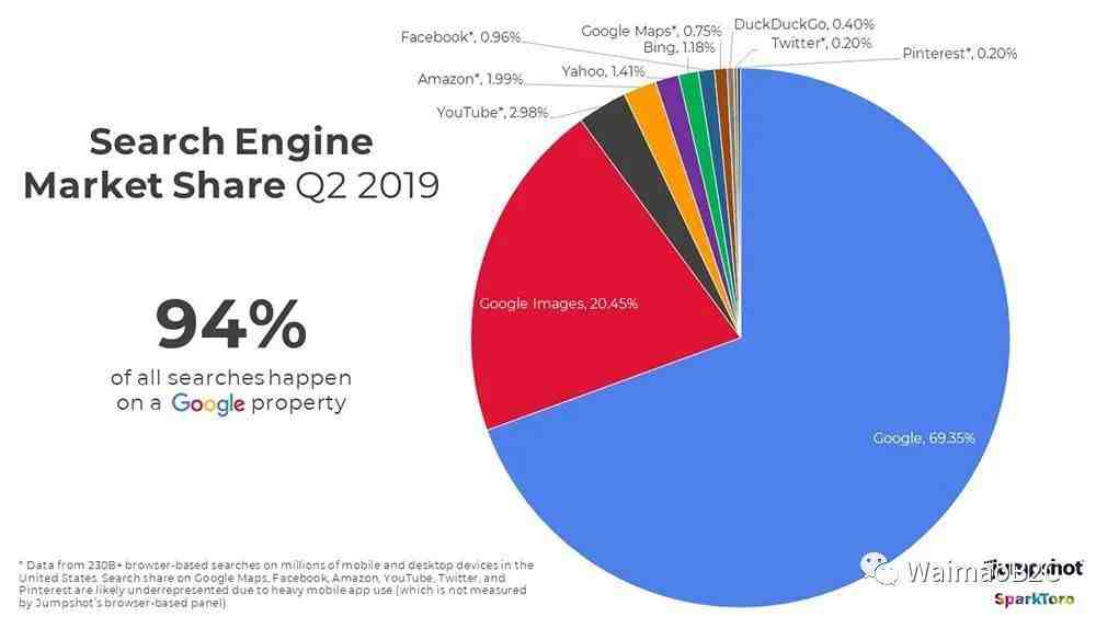 这里需要注意的是,上面的报告只统计了通过浏览器访问搜索服务的数据,而没有统计APP内的数据。比方说,该数据统计没有计算到Youtube手机客户端的搜索次数,使用次数,因此,可能Youtube的占比会更高。图片左下角文字说明如下
