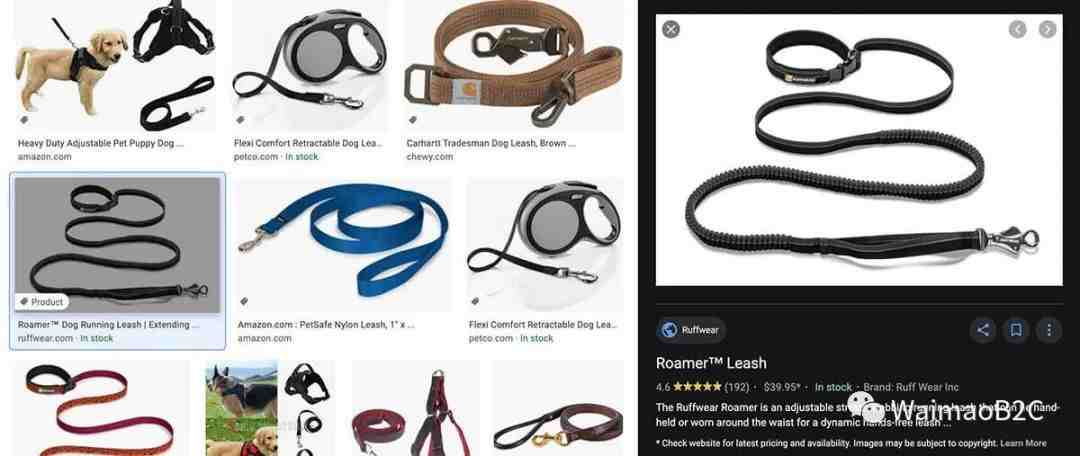 Google Image在这次更新之后,用户在使用谷歌图片搜索的时候,就会出现如下图所示的产品标签。当点击某个图片之后,用户可以直接在Google Image搜索结果中查看产品的品牌,价格,评价,库存等结构化数据信息。点击图片,品牌名称或者标题可以直接跳转到产品页面购买产品。