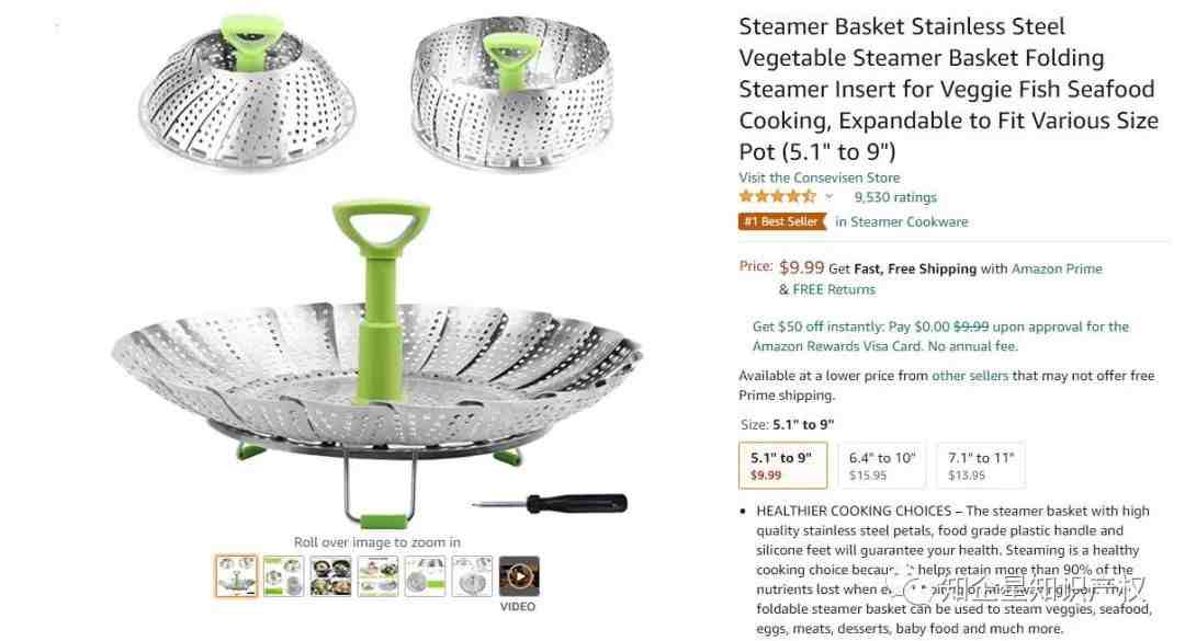 今天在浏览亚马逊的时候,看到了一款折叠蒸笼,它是美国站的的#1 Best Seller ,售价9.99美金,留评9548颗星。