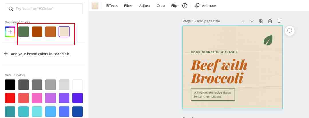 例如我们选中一张图后,图片上的颜色就被自动提取出来了,我们后面加字加背景都可以参考图片已有颜色,实现颜色协调,避免设计的图中出现多种颜色太花哨了。
