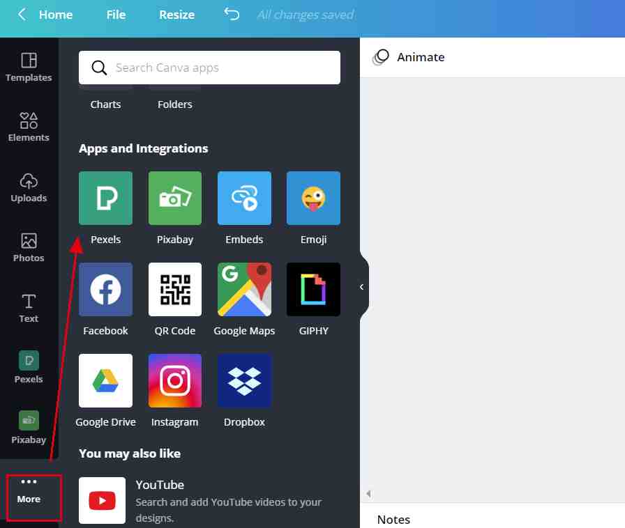 点击More可以添加更多的功能模块,例如Pexels, Pixabay等,就到了左边框里。点击后就是海量的高清的无版权的图片,满足我们各种设计场景需要。