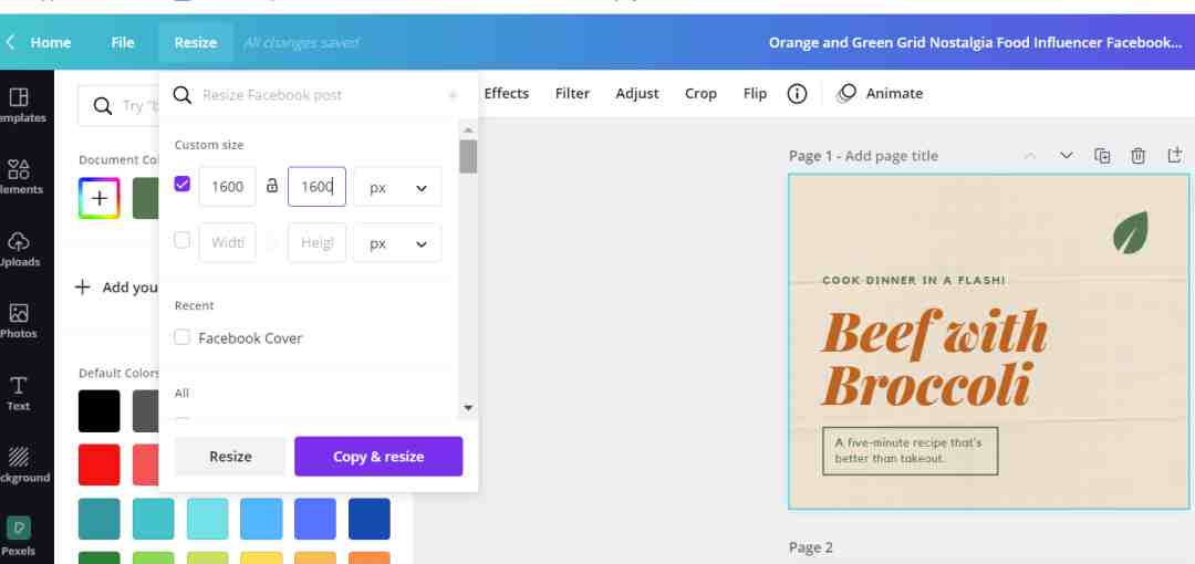 Logo图,亚马逊主副图,INS图,Facebook等不同平台不同用途的图片尺寸都是不一样的,在设计过程中我们可以随时调整图片大小,输入或者选择像素,然后点Copy&Resize.