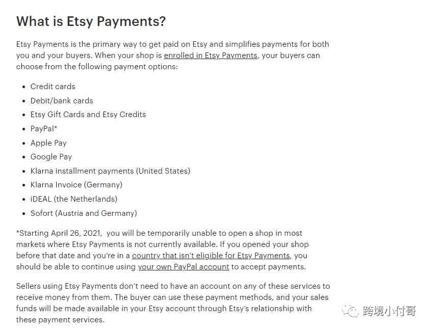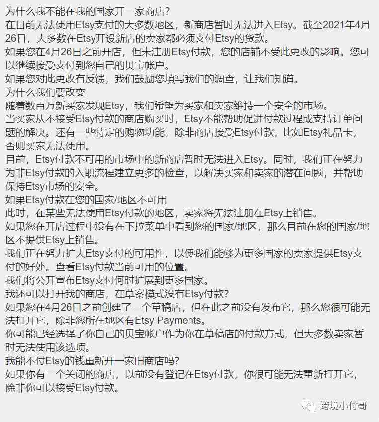 从2021年4月26日开始,Etsy平台将暂时无法在目前尚无法使用Etsy Payments的大多数市场中开设商店。如果在该日期之前开了店,并且所在的国家和地区不符合Etsy Payments的条件,那么应该可以继续使用自己的PayPal帐户接受付款。