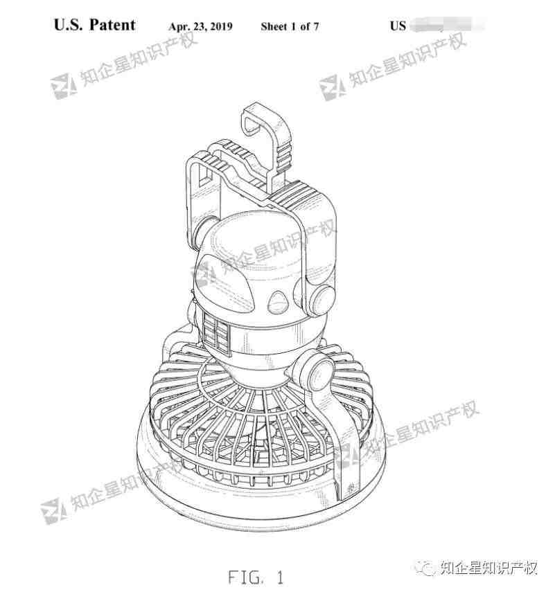 那这款产品是否有专利保护呢,我们也针对产品做了定向查询,确实找到了它的美国外观专利,下图就是它的专利示意图。
